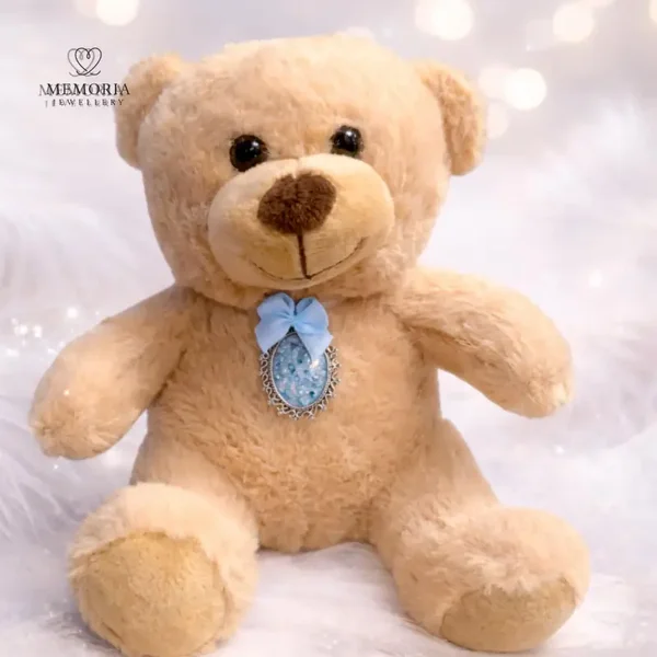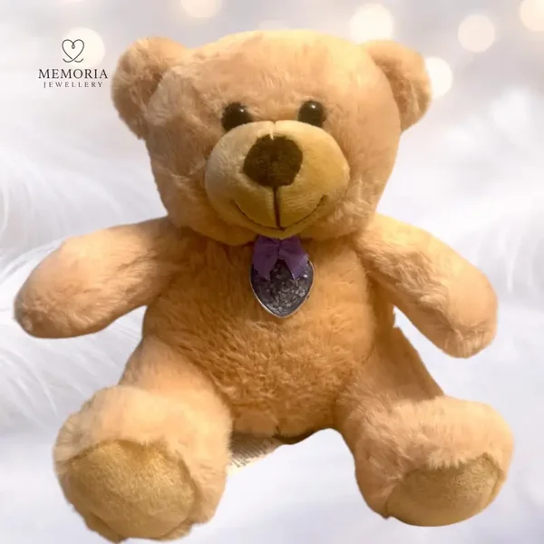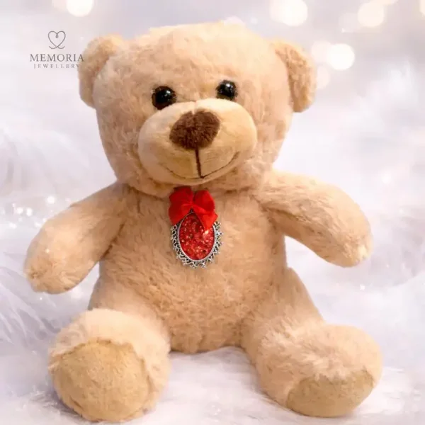 Our Teddy Bear Memorial Keepsake is a gentle and comforting tribute designed to honour and remember someone special. The soft teddy bear holds a round memorial stone necklace, creating a meaningful keepsake that can bring comfort during difficult times.